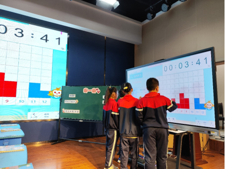(示范課上桃江縣城南學(xué)校學(xué)生用電子屏參與課堂活動)